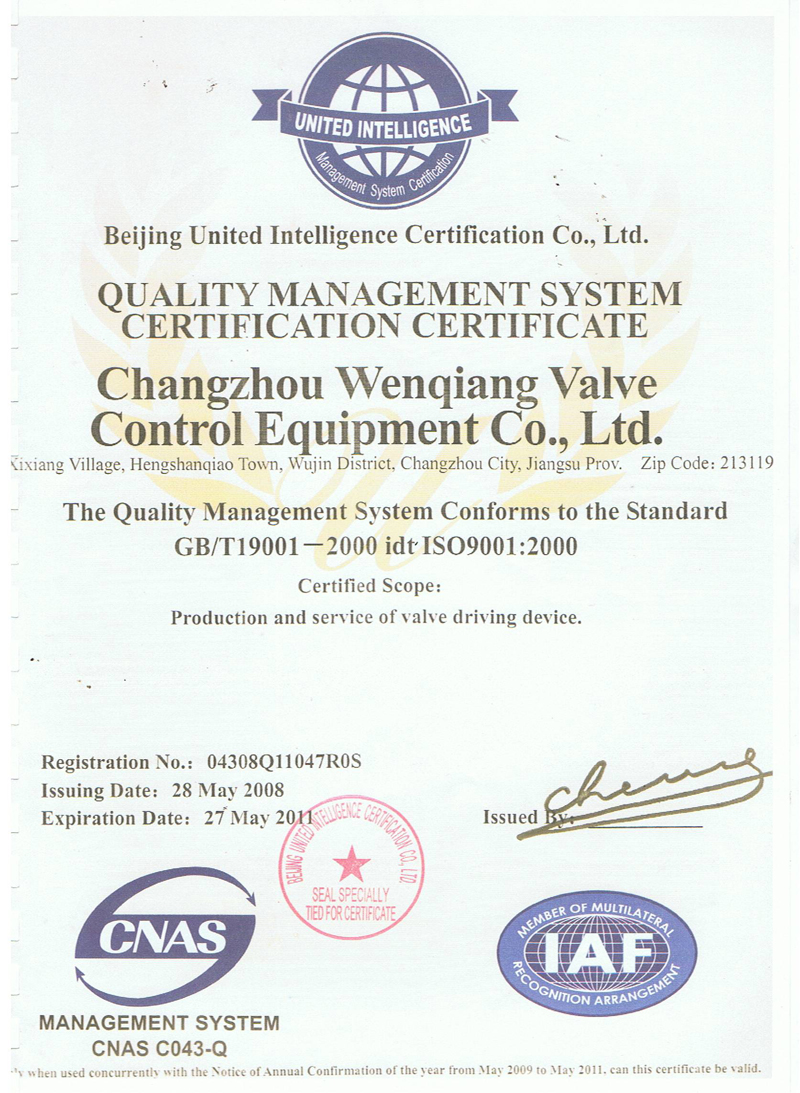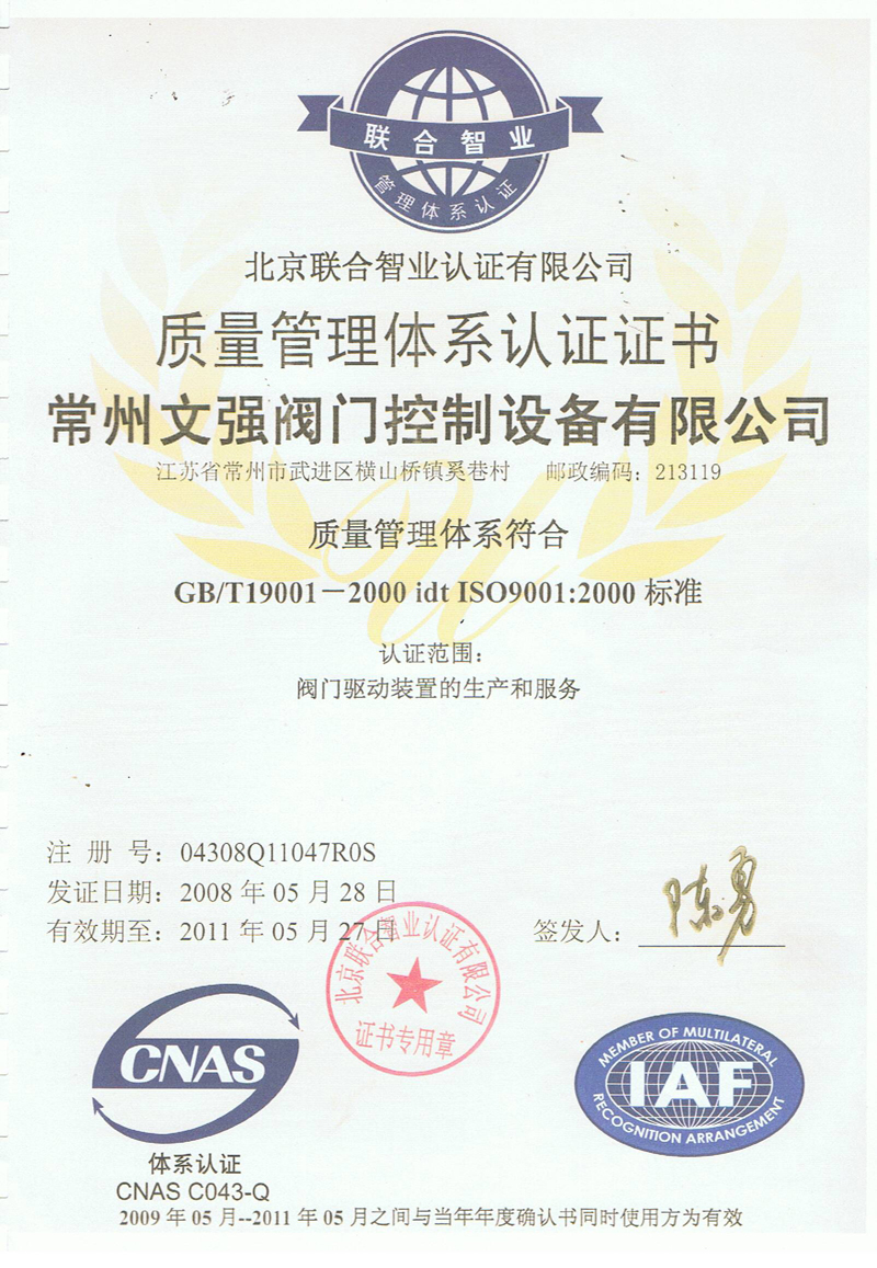 质量管理体系认证证书